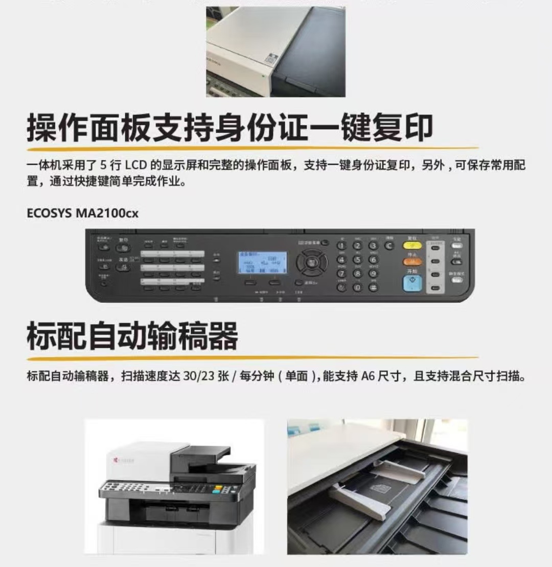 京瓷MA2100cx激光彩色打印机带输稿器和双面器